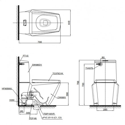 ►Thông tin chi tiết Bàn cầu TOTO CS680DT4