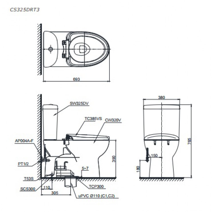Bồn Cầu Hai Khối TOTO CS325DRT Nắp TC385VS