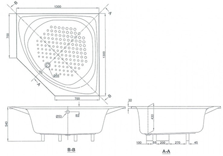 ► Thông tin chi tiết Bồn tắm góc TOTO PAY1300PE/DB503R-2A