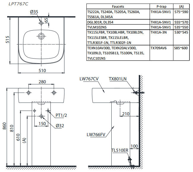 • Tên sản phẩm: Chậu rửa chân dài TOTO LPT767C