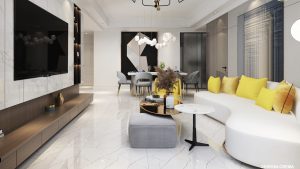 Thứ 2 về màu: thường nhà sẽ theo 2 gu chính- hỏi khách hàng đồ nội thất đóng màu gì, nhà hiện đại thường dùng các gam màu men matt, tông chính là đen trắng, ghi đậm- nhạt ( đồ nội thất sẽ thường là trắng). còn nếu đồ nội thất là gỗ theo hơi hướng tân cổ điển sẽ tư vấn chọn màu vàng, các tông sáng để nổi đồ nội thất. Có thể tư vấn thêm theo màu sơn , các tông tường như trắng, vàng kem nhẹ, nền có thể nhấn màu đậm cho đỡ đơn sắc, nhìn nhà cũng khỏe hơn, với nhà trần thấp chọn màu sáng cho thanh nhà.