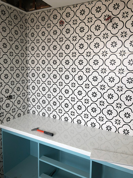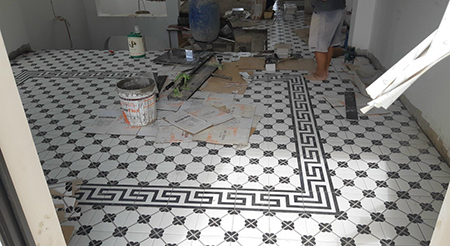 Gạch bông giả cổ khu vực phòng khách, hành lang