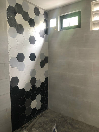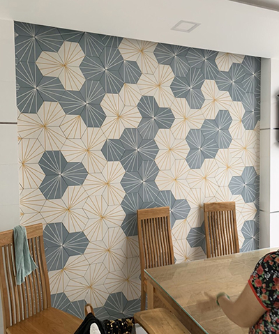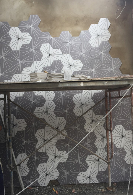 Gạch lục giác đẹp giá rẻ đen kẻ chỉ trắng 20×23
