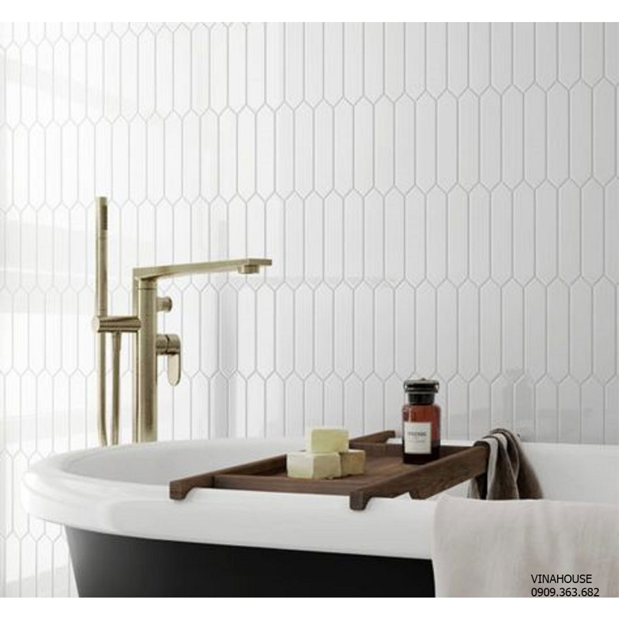 Có nhiều kích thước khác nhau, được phủ men bóng đẹp nên được các chủ nhà ưa chuộng, tin dùng cho các không gian nhà. Bên cạnh đó gạch thẻ hình mũi tên còn có ưu điểm có khả năng chống thấm nước tốt, phù hợp dùng để ốp lát cho các không gian, khu vực thường xuyên tiếp xúc với nước, chẳng hạn như phòng tắm, nhà vệ sinh.