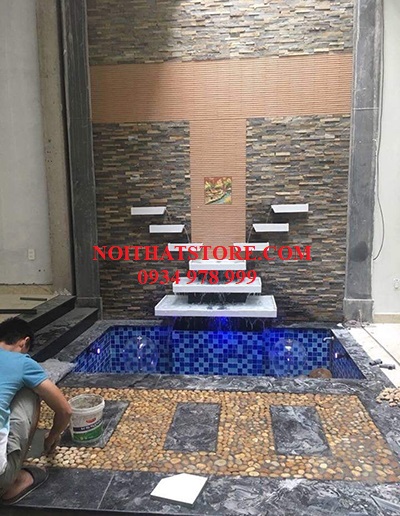 Gạch ốp trang trí khu vực bể cá sân trước