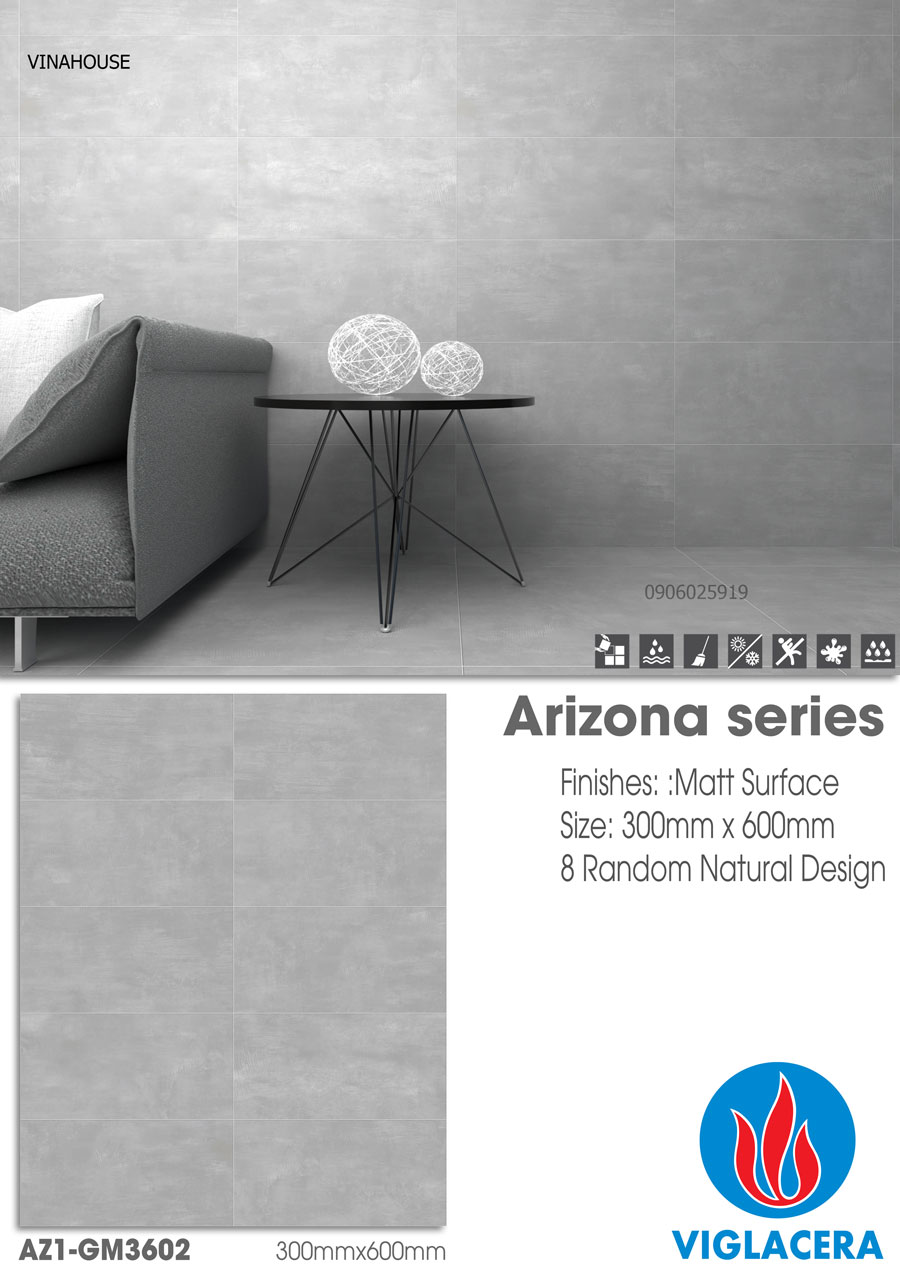 AZ1-GM3602 – với kích thước 300x600mm trên nền mờ nhám, chống trơn trượt thích hợp với nhiều không gian như toilet, sân thượng, ban công, các khu vực ngoài trời…phù hợp với mọi thể loại công trình.